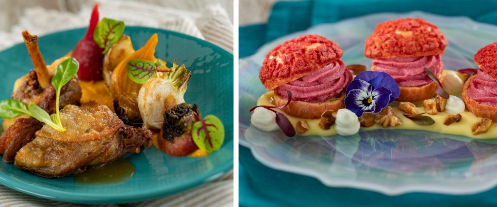 - Off the “Beet”en Path: Profiteroles with Red Beet Mousse, Golden Beet Pastry Cream, Whipped Goat Cheese Cream, and Candied Walnuts (new).