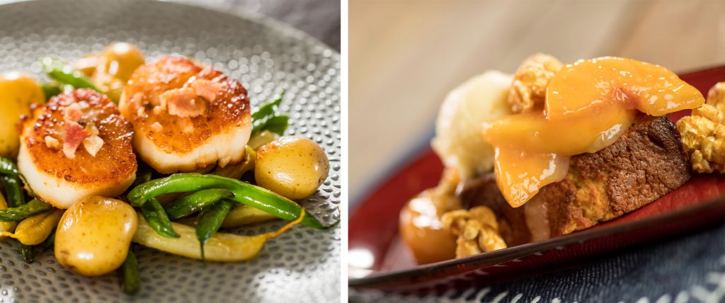 - Seared Scallops with French Green Beans, Butter Potatoes, Brown Butter Vinaigrette and Apple-wood-smoked Bacon (gluten/wheat friendly).