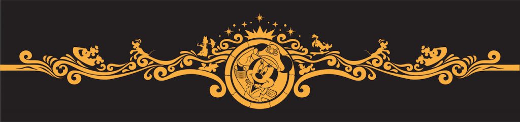 The bow’s elegant filigree art, a hallmark of Disney Cruise Line vessels, includes an intricate scrollwork pattern reminiscent of the classic ocean liners of the 1930s. And the portrait of Captain Minnie on the Disney Wish adds just the right amount of Disney whimsy to the design!