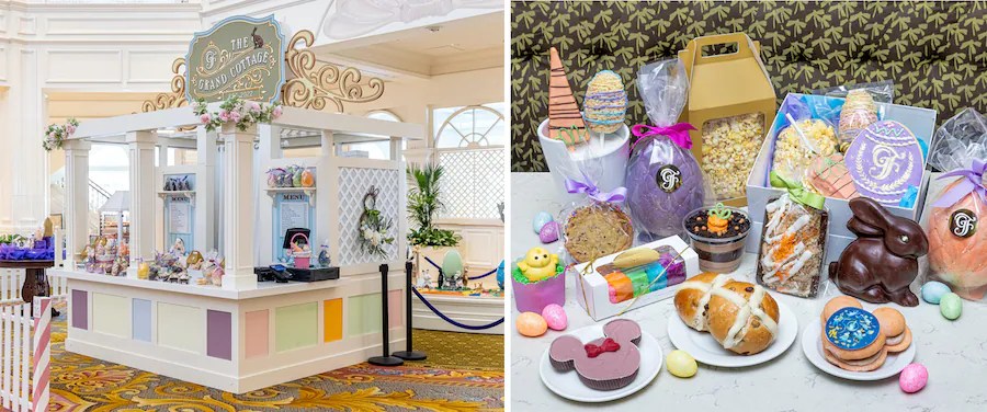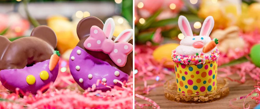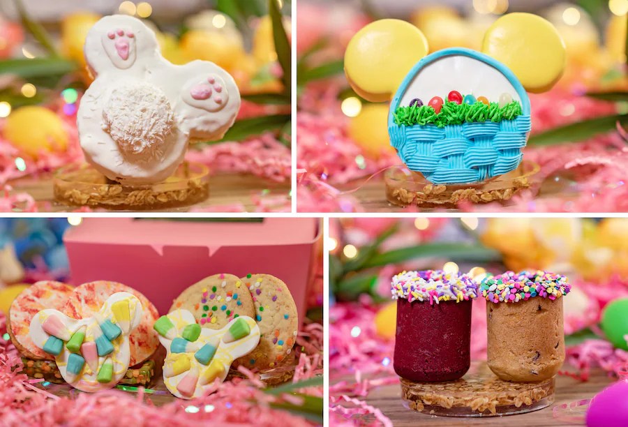 - Offerings including the Carrot Blondie Pop, The Grand Combo, Carrot Coffee Cake, Grand Egg, Artisan Marshmallows, Confetti Cake Popcorn, Mickey Whoopie Pie, Crispy Rice Egg, Baby Chick Cupcake, Spring Garden Dessert, Hot Cross Buns, Chocolate Chip Sandwich Cookie, Dark Chocolate Bunny, and Raspberry Minnie Fudge