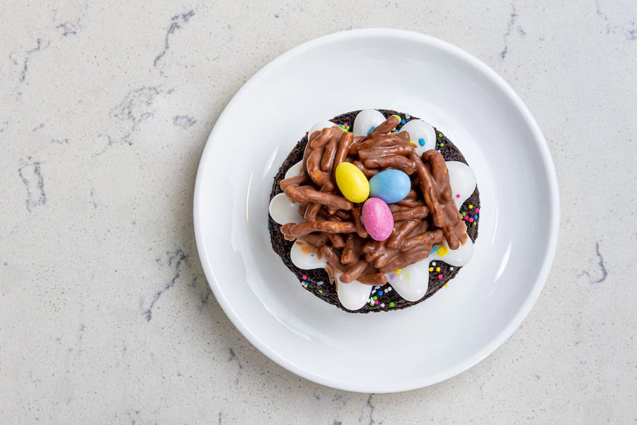 - Easter Chick Brownie: Fudge brownie with dark and white chocolate garnish to look like a hatching chick (available April 12 through 17) (New)